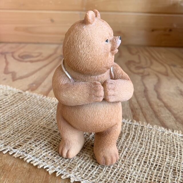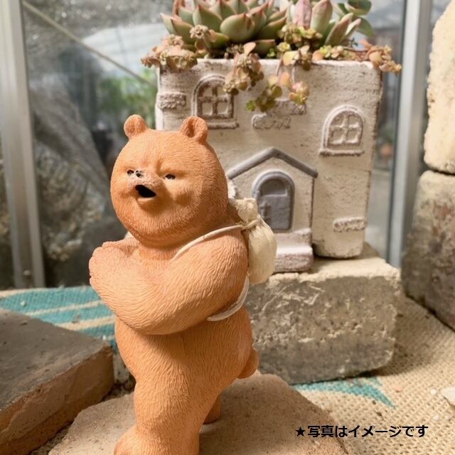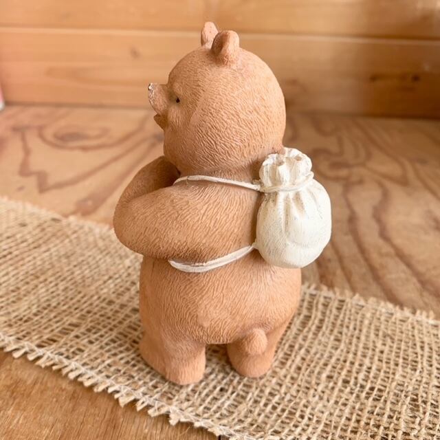 リュックを背負った熊の置物です。