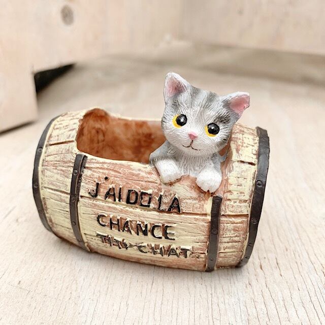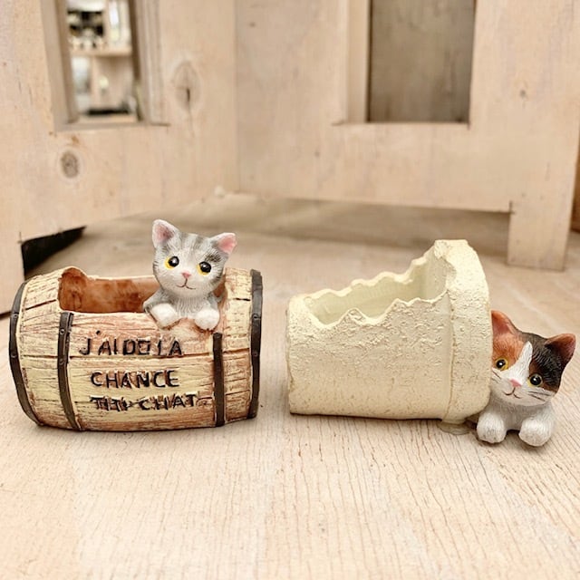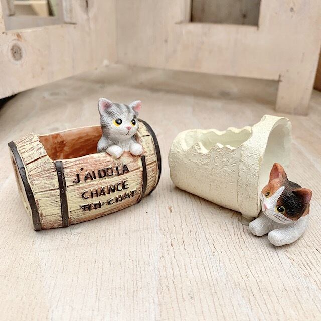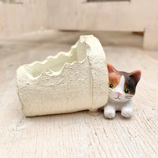 猫がこっそり覗いている姿が可愛い小さなポットです!